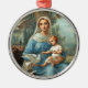 O ornamento da Madona Azul Francesa apresenta uma imagem de um belo cartão sagrado francês antigo impresso no final do século XIX. Jesus e a Mãe Abençoada estão cercados por pombas brancas e uma paisagem arborizada nebulosa.