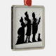 Ornamento dos Carolers do Natal. Silhueta preto e branco dos carolers com filhote de cachorro em uma tempestade de neve.