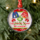 Seu partido festivo e da camisola feia do Natal ou do feriado do divertimento estará mais completo com este ornamento superior personalizado como um prêmio para o vencedor da competição feia da camisola. As duas camisolas foleiros saltam fora do vermelho e os flocos de neve brancos modelam o fundo com um ornamento verde de suspensão, os dois pares de mitenes, um boneco de neve, o bastão de doces, a meia e as cabeças do papai noel. Apenas adicione o ano na caixa de texto fornecida ou personalize-o como você quer. Se você precisa alguma ajuda que personaliza este ornamento cómico para seu partido, envie por correio electrónico niteowlstudio@gmail.com.