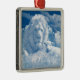 Leão e cordeiro no céu com ornamento de nuvens.