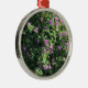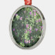 Este impressão fotográfico é de flores bonitas da lavanda em um campo das folhas verdes impressas em um ornamento redondo superior.