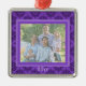 Um quadro roxo destacado por um fundo com uma cor damasco preta subtil é a peça central deste ornamento elegante da foto da lembrança. Transfira arquivos pela rede sua própria foto e personalize o ano. Este design elegante faz um grande presente para toda a ocasião!