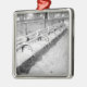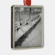 Uma cena de um parque de neve numa noite de vitória. A neve coberta de bancos recua para a distância em uma imagem em preto e branco que faz um Enfeites de natal perfeito ou uma manutenção a qualquer momento.