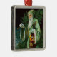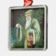 O ornamento de Papai Noel vestiu-se no verde e em levar um pinheiro. Imagem do cartão do natal vintage.