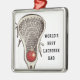 Ornamento exclusivo de presentes de pai de lacrosse, com fácil personalização da arte lacrimogênea.