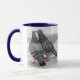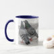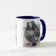 Uma caneca para fãs do pombo e fanciers do pombo. A caneca caracteriza uma fotografia original de dois pombos que romancing. Os olhos do pombo masculino são fechados no ecstacy porque estica seu bico para a fêmea como se para a beijar.
