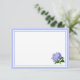 A placa de nota plana é mostrada em branco, com uma coroa azul de borda dupla e um adorável impressão de flor azul de hydrangea. Personalize este cartão ou comprar como está. Imagem do stock