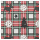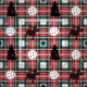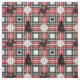Tecido branco, vermelho e preto de picleball natalício com floco de neve, árvore de Natal, picleball branco e texto personalizado em quadrado vermelho e preto sobre fundo xadrez vermelho. ideia do excelente para fazer presentes para seu amigo ou membro da família de pickleball