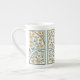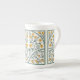 Caneca ao estilo Art Nouveau com flores amarelas de botão.