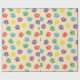 Este papel roliço geométrico e colorido é cheio de cores (azul, vermelho, amarelo, castanho, verde) e iluminará todos os presentes que você está dando!