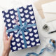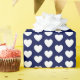 Um papel de embrulho com corações brancos sobre fundo azul marinho. Personalize a cor de fundo entre outras opções.