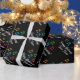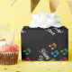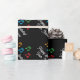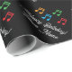 Feliz aniversário embrulhando papel com notas musicais. Folha de presente personalizada com texto de aniversário feliz personalizado. Design de modelo para homens, mulheres e crianças (rapazes e raparigas) que adoram música, música de fazer ou que tocam instrumentos musicais. Cor de fundo preto personalizável. Papel de embrulho elegante para professor de música, pianista, cantor, artista, vocalista, pianista, crianças, estudante etc. Também excelente para férias de Natal.