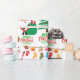 Que design de "Feliz Natal", festivo e divertido, que fará seus presentes se destacarem. Apresentando Papais noeis, uma rena legal com óculos, um gato malicioso pego nas luzes das árvores de Natal, meias de Natal esperando serem preenchidas, todas capturando o espírito da estação, fazer perfeito para todas as suas comemorações de Natal.