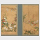Uma pintura japonesa antiga de Watanabe Shiko é muito bonita para ficar em um cofre de museu. Os verdes mudos desbotados e vermelhos são festivos o suficiente para feriados como Natal, Festivus, Anniversários Ouros ou aniversários. Qualquer ocasião é a minha razão favorita para embrulhar um presente na arte do luxo.