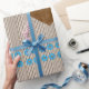 De Presente Papel Brilhante Escuro Stripes Flores Azuis