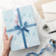 Este papel caracteriza um teste padrão de repetição do guingão do bebê no azul. Há um coração branco que funcione durante todo onde você pode personalizar o texto do seus próprios! Coloque um nome, uma data, qualquer coisa que você deseja. Este design igualmente caracteriza montantes, um pato, e pegadas azuis. Faz uma grande adição a todo o presente do chá da baía.