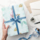 De Presente Papel Floral Água-Marinha com Glitter Dourado