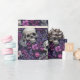 Enrole seus presentes em estilo com este design único com flores roxas bordadas e crânios de cinza. Perfeito por adicionar um toque artístico elegante a qualquer ocasião, este papel de embrulho combina talento gótico com elegância floral para uma apresentação verdadeiramente destacada.