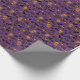 Papel embrulhando com um moderno design minimalista para o Halloween, um padrão de silhuetas de crânios, fantasmas, teias de sabugo, uma silhueta de gato, abóboras.
