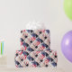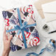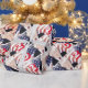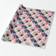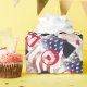 Este papel de embrulho patriótico apresenta vermelho, branco e azul com Donald Trump e "Trump 2020" em um padrão repetitivo.