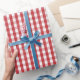 Um papel de envolvimento projetou com um teste padrão vermelho e branco da obscuridade - do guingão no tamanho médio.