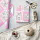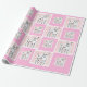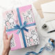 Papel de enrolar num rolo com um padrão de poodle esnooty rosa. Poodles estilizados com pom e poças.