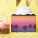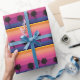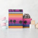 Oceano e pôr do sol coloridos e vibrantes com uma silhueta de palmeiras embrulhando papel. Papel de embrulho bonito e empolgante para qualquer um poder apreciar e para qualquer ocasião.