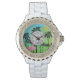 De Pulso relógio rosa flamingo e palms rhinestone