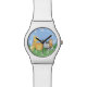 Animais atrativos, bonitos e coloridos do safari que consistem no girafa, no leão, na zebra e no macaco escondendo entre a grama alta. Este relógio adorável dos miúdos com números brancos é um presente maravilhoso para crianças para o Natal, aniversários ou simplesmente apenas para o uso diário!