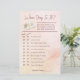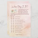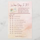 Este divertido jogo de chá de panela vai testar como seus convidados conhecem bem a noiva e o noivo. Os convidados devem adivinhar se cada item faz parte da história da noiva, do noivo ou de ambos. O jogo é totalmente personalizável para que você possa digitar seus próprios itens ou usar os itens fornecidos. O trabalho de arte cor-de-rosa-pincel e cor de pêssego inclui uma aquarela fofinha de um anel de noivado balanceado nas páginas de um livro aberto formando uma sombra em forma de coração com uma rosa nas proximidades. Perfeito para um chá de panela temático do livro!