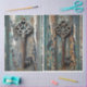 2 Chaves enferrujadas nos fundos da patina, excelente para fazer com que os seus armários se encaixem numa folha. Cuidado com esta impressão que dá vida ao trabalho de arte.