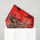 Papel tecidular com imagem de dragão contra fundo vermelho.