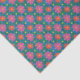 Uma folha de Papel Tecidual, com um padrão colorido de Flores Vermelhas e Rosa e Bolinhas Amarelas em um Fundo Azul Profundo e Verde. Parte da coleção Posh & Painterly 'Rangoli'.