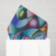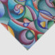 Papel de tecido brilhante e colorido, com balão de ar quente, tambor de conga e lâmpada, juntamente com outras formas que têm curvas semelhantes.