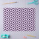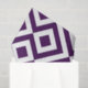Esse padrão ousado, geométrico, roxo regal e branco é um design original ornamental. Diamantes roxos com bordas brancas são cercados por meandros roxos reais que os rodeiam. Os ziguezags brancos separam os caminhos roxos enrolados e os diamantes em offset. Coordene seus presentes com fita correspondente e papel de empacotamento: imagem criada digitalmente. Copyright © Claire E. Skinner. Todos os direitos reservados.