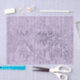 Uma decoração antiga e caprichosa de damasco cintilante sobre um fundo de papel jornal roxo.