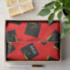 Presente de graduação criativa ou tecido de festa com bonés de formatura de preto e ouro em fundo vermelho. Editar texto para adicionar ano de classe de mais velho
