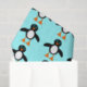 Este papel de tecido incrível é perfeito para embrulhar presentes. Apresenta um caráter pinguim bonito com uma barriga branca, grandes olhos azuis com pupilas pretas e pés cor de laranja e bico. Esta pequena ave de inverno encantadora encanta crianças e adultos. O pinguim se senta sobre um fundo azul pálido e gelado para lembrá-lo de sua casa chilena no Ártico.