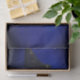 Papel tecidular com imagem de uma cauda de sereia contra uma lua ascensão num mar azul.