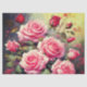 Papel tecidular com imagem de rosas e botões cor-de-rosa.
