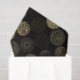 Círculos de porta em tons de ouro marrom-amarelo. Variedade de círculos poka-ponto constituídos por linhas estreladas, bolhas, espirais, linhas estreladas, pontos cruzados, etc. Este padrão pode acomodar qualquer cor de fundo que você escolher. Mostrado em preto.