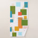 Este conjunto de toalhas tem uma design moderna do século médio de retângulos e linhas em cores dos anos 60.