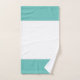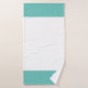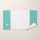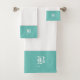 Branco com um monograma de texto tradicional no conjunto de toalhas de banho de borda de cinza verde-aqua e verde-claro.