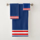 Elegante conjunto de toalhas azul, branca e vermelha.