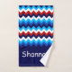 Um conjunto de toalhas monogramas que apresentam um padrão colorido, de tendência design de córtons vermelhos, brancos e azuis. Crie o presente personalizado perfeito clicando no botão "personalizado" para adicionar um nome ou mensagem personalizada no campo modelo fornecido. Selecione o link "clique para personalizar mais" para alterar a fonte, o tamanho do texto e muito mais.