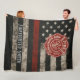 Honre o herói em sua vida com este cobertor personalizado de bombeiro, apresentando uma ousada bandeira americana Thin Red Line e um emblema do Departamento de Bombeiros que pode ser totalmente personalizado. 🧯🇺🇸