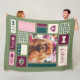 Grande cobertor de velo com design de Ruby Cavalier Charles Spaniel art. design De Olhar Descartado. Cores verde e rosa. Arte canina.