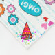 Acalme-se com este cobertor aconchegante com os símbolos, flores, palavras e as suas personagens favoritas da Miss Oji. Projetado por Hermine Brindak.