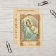 Imagem bonita do vintage da Virgem Maria abençoada com o bebê Jesus. Na parte traseira é a oração de Memorare: