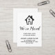 Mantenha seus amigos e familiares atualizados com seu novo endereço usando esses cartões de gabinete simples e divertidos. Os destaques da tipografia versátil leem "Nós nos movemos" na frente e "Fique em contato!" centrados no verso, usando uma fonte moderna e casual. No topo da frente do cartão adicionei uma casa peculiar desenhada à mão a preto. Use os campos modelo para adicionar todos os seus detalhes exclusivos e personalizar este design para seu próprio uso. O tipo preto foi colocado sobre um branco editável; você pode mudar o plano de fundo para qualquer cor que desejar. Da mesma forma, as fontes podem ser alteradas se você quiser editar o design ainda mais. // Concebida por Melody Watson para Paper Muserie.